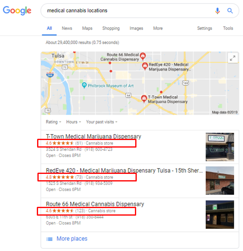 *Asking for reviews when operating in alternative health or highly regulated industries is one way to stand out on the local search rankings. For industries like medical cannabis, finding ways for current customers to leave their review on Google and Facebook is one legal digital strategy you can use today.