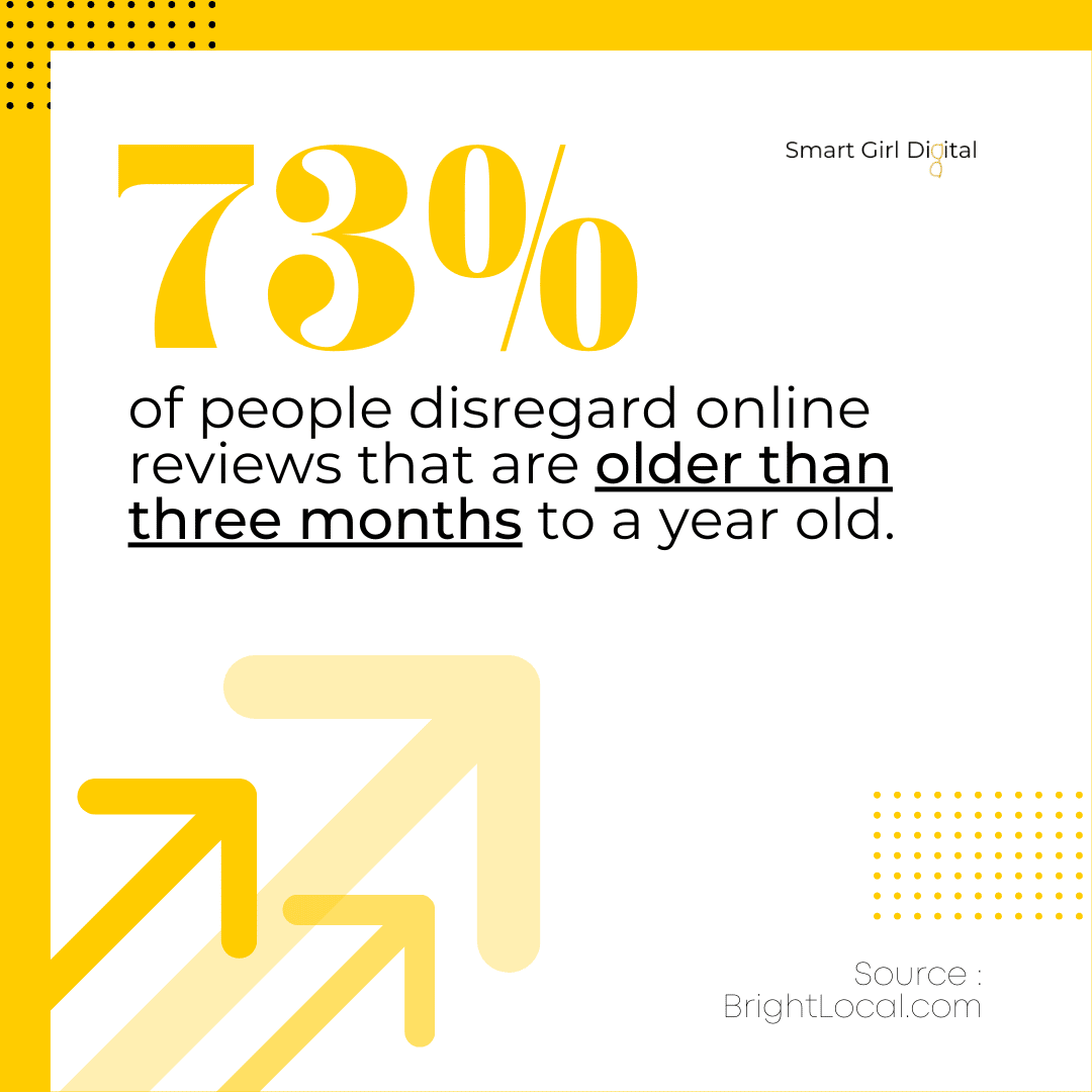 Staggering Stat #2: 73% of people disregard online reviews that are older than three months to a year old (Source: BrightLocal)