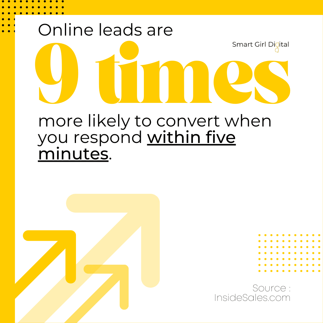 Staggering Stat #5: Online leads are nine times more likely to convert when you respond within five minutes (Source: InsideSales.com)
